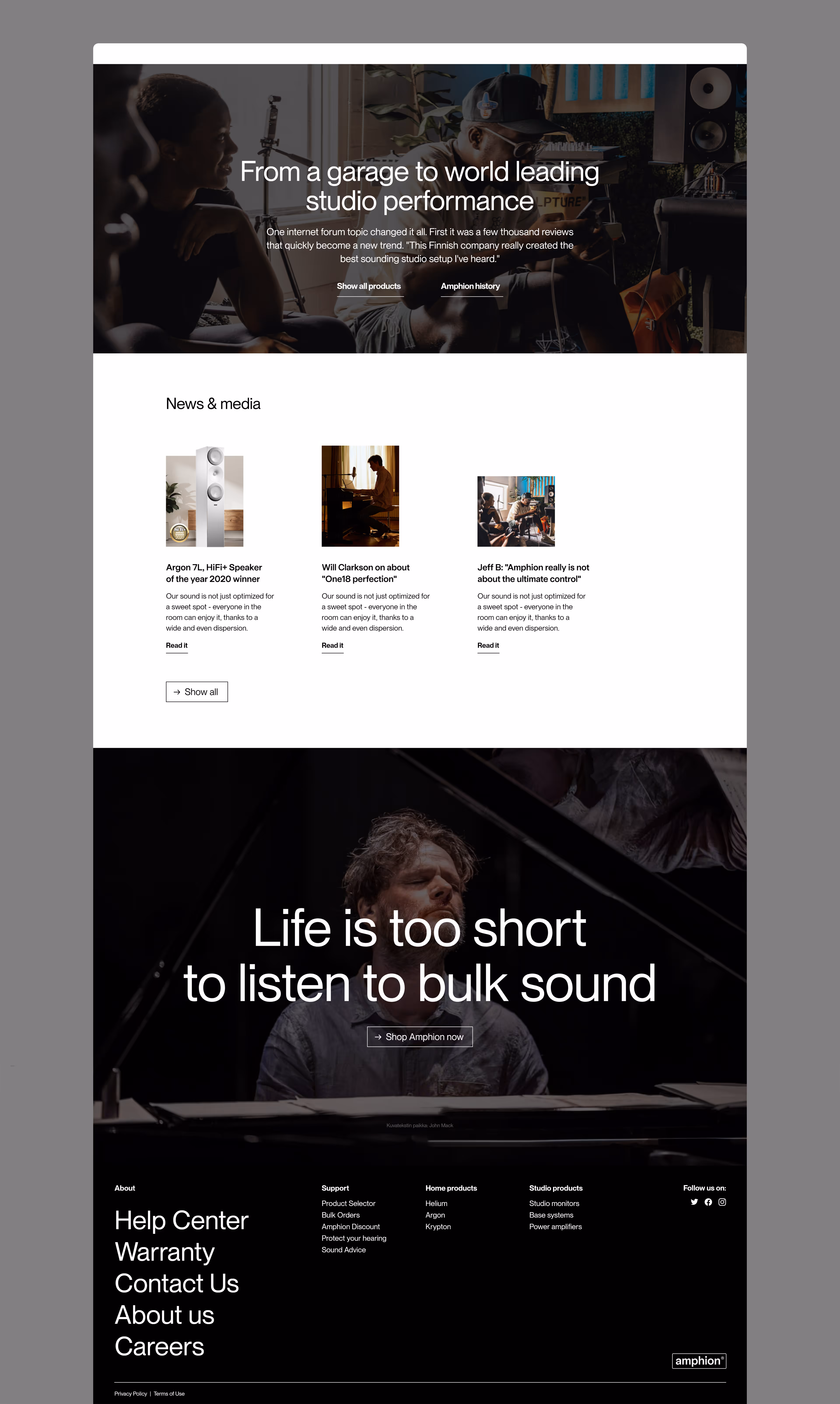 While less known among average consumers, Amphion is regarded as one of the world's best by international music producers. They design and manufacture speakers for both studio and home use. We created a visual identity that communicates their high quality and developed their new website.
